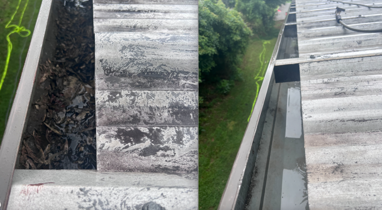 The word is out: We are the #1 Exterior Cleaning Company in Winston-Salem! We are branching into commercial work and this includes gutter cleaning as well! Commercial buildings have much bigger gutters, and in turn, they hold a lot more debris than your average residential sized gutters. Have no fear, we are up for the challenge - check out these before and after photos!