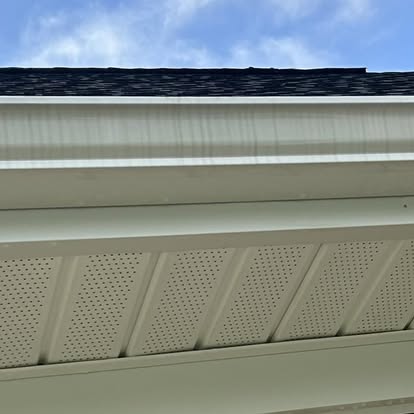 After a house wash, gutters can sometimes be left with stubborn grey streaks known as “tiger stripes.” These marks are caused by oxidation and can’t be removed with standard pressure washing. That’s why we’ve trained our team to use advanced gutter brightening methods that safely remove those lines and restore gutters to a like-new shine. ✨